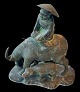 Vietnametisk bronzeskulptur i form af barn på bøffel. H. ca. 18 cm. Ca. 1970'erne.
