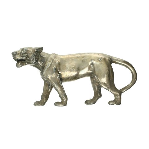 Tiger figur af metal. H. ca. 9 L. ca. 18,5 cm.