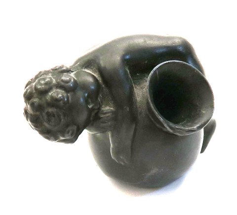 Just Andersen penneholder/blækhus af patineret diskometal i form af sovende dreng på krukke. H. 6 cm.