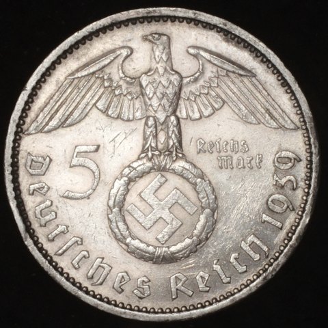 Tyskland - 5 Reichsmark - 1939 - A - Paul von Hindenburg - KM# 94