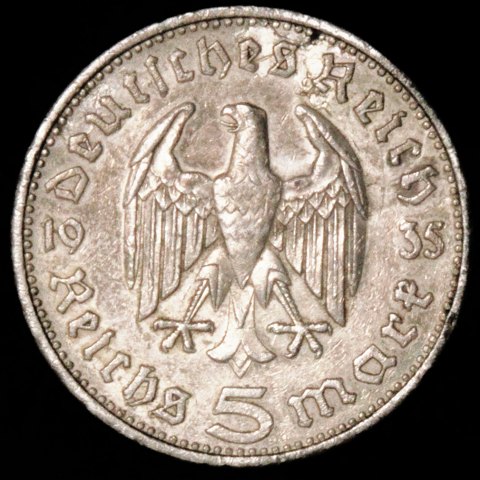 Tyskland - 5 Reichsmark - 1935 - Paul von Hindenburg - Sølv - KM# 86