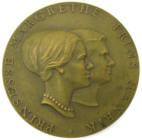 Prinsesse Margrethe og Prins Henrik bryllupsmedaille 10. juni 1967 af bronce. Diam. 55 mm., vægt 72,2 gr.