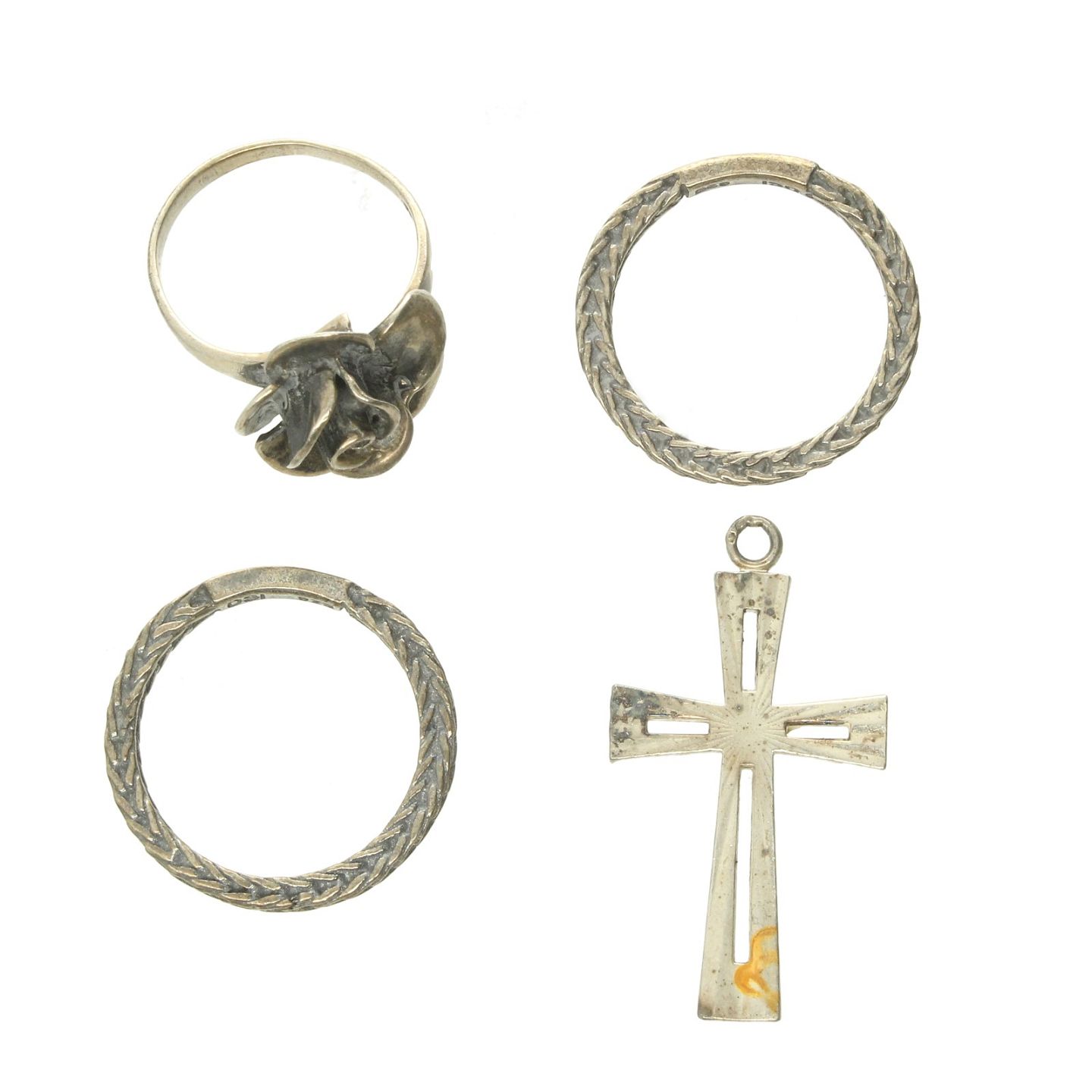 En samling diverse bijouteri samt lidt sølv. Vægt på dele af sølv: ca. 10 gr.