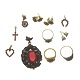 En broche med defekt lås, fire vedhæng, tre par ørestikker samt tre ringe. Ringstr: 51, 53 og 58.