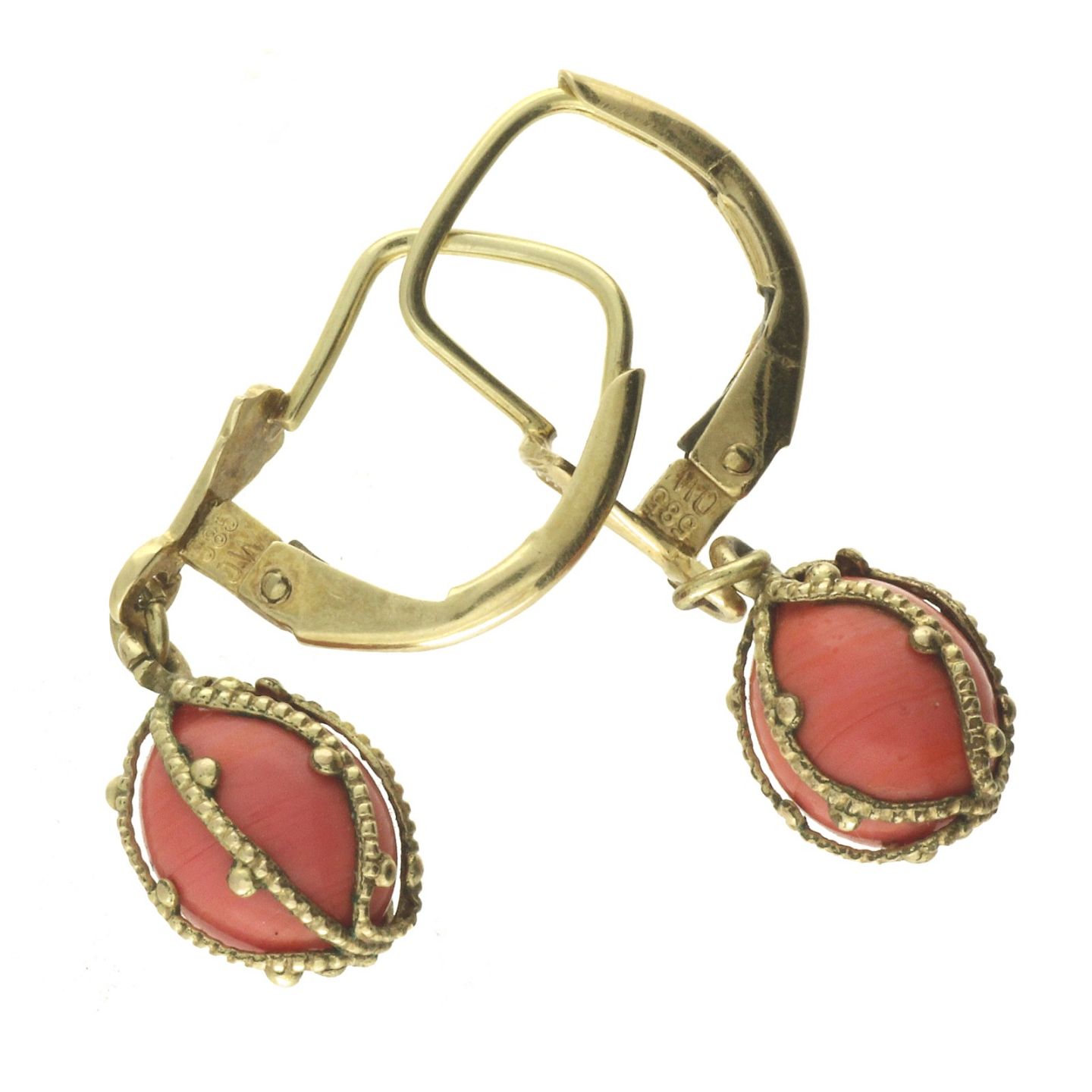 Par øreringe af 14 kt. guld fattet med koraller. Samlet vægt: ca. 2,14 gr.