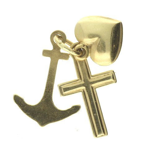 Tro, håb og kærlighed vedhæng af 14 kt. guld. L. ca. 7 mm. Vægt: ca. 1,23 gr.