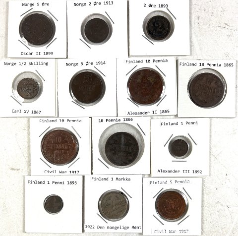 Finland / Norge - En samling mønter (13) (1865-1922)
