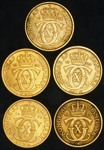 Samling gamle danske gule ½ kroner (5) - (1924-1940) - Komplet Sæt