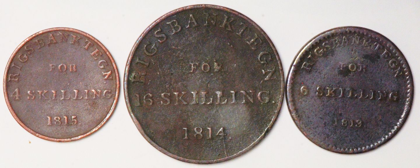Danmark (3) 16 skilling (1814) - 6 skilling (1813) - 4 skilling (1815)