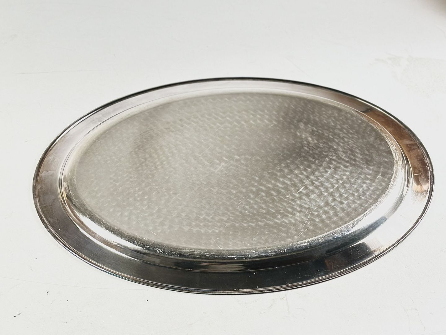 Stort ovalt fad af sølvplet. L. 53 cm. Vægt: ca. 165,5 gr.