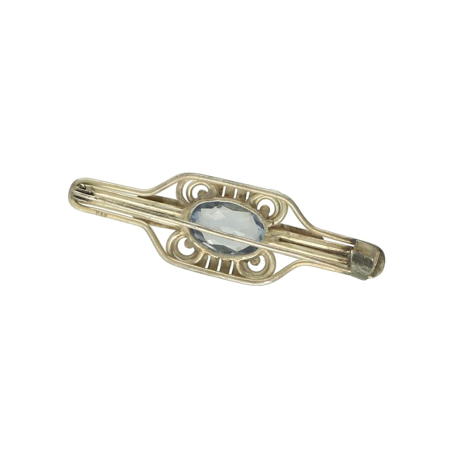 Tysk broche af 800 sølv fattet med blå sten