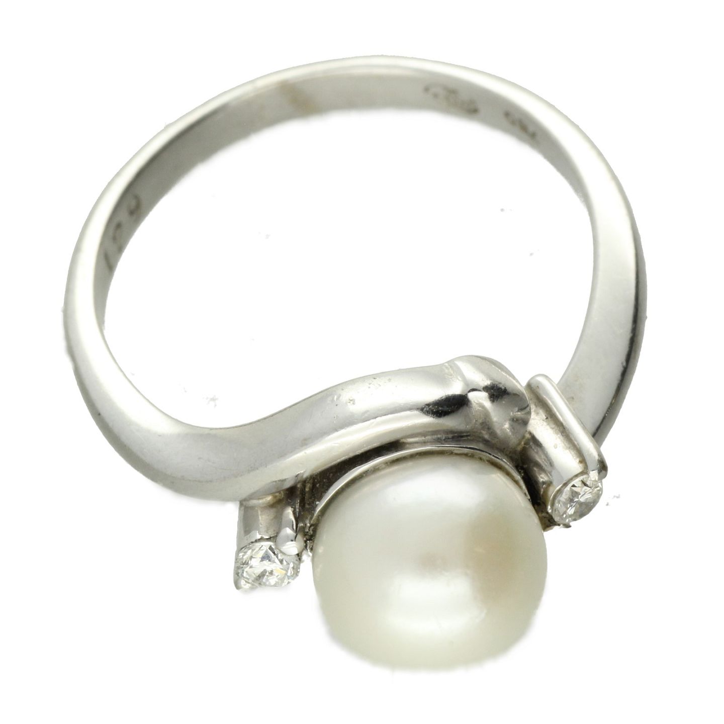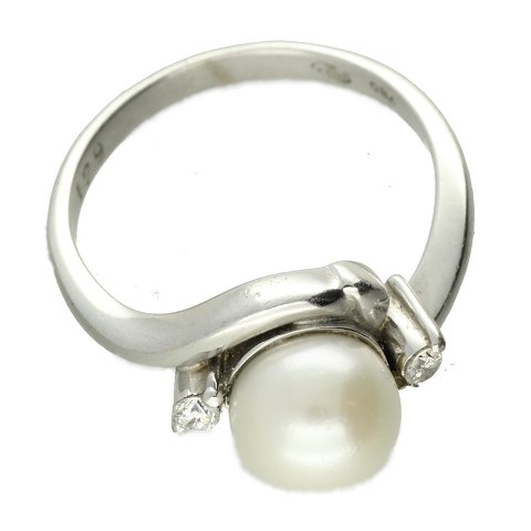 Ring udført af 18 kt. hvidguld fattet med to brillanter på i alt ca. 0.07 ct. Ringstr: 49. Vægt: ca. 4,41 gr. Certifikat medfølger.