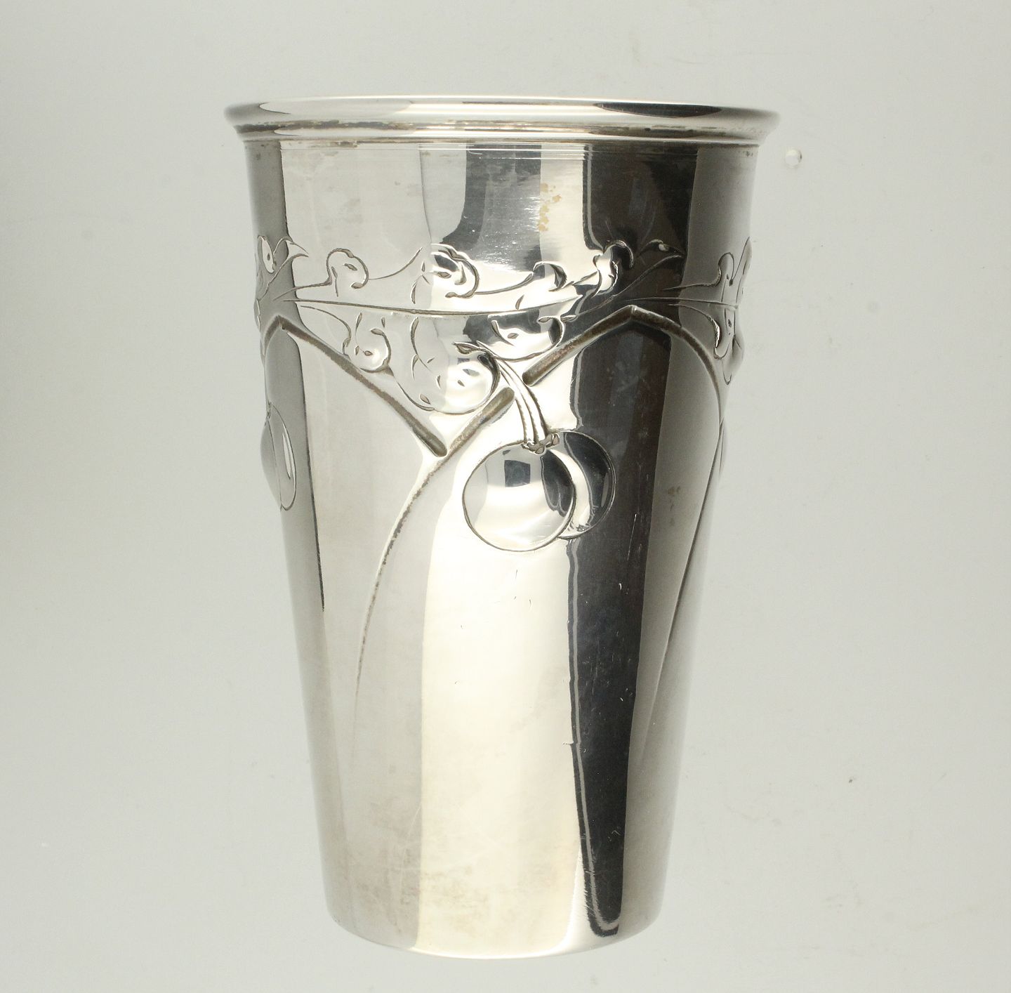 Bæger af tre tårnet sølv. H. 9,5 cm. Vægt: ca. 72,3 gr.