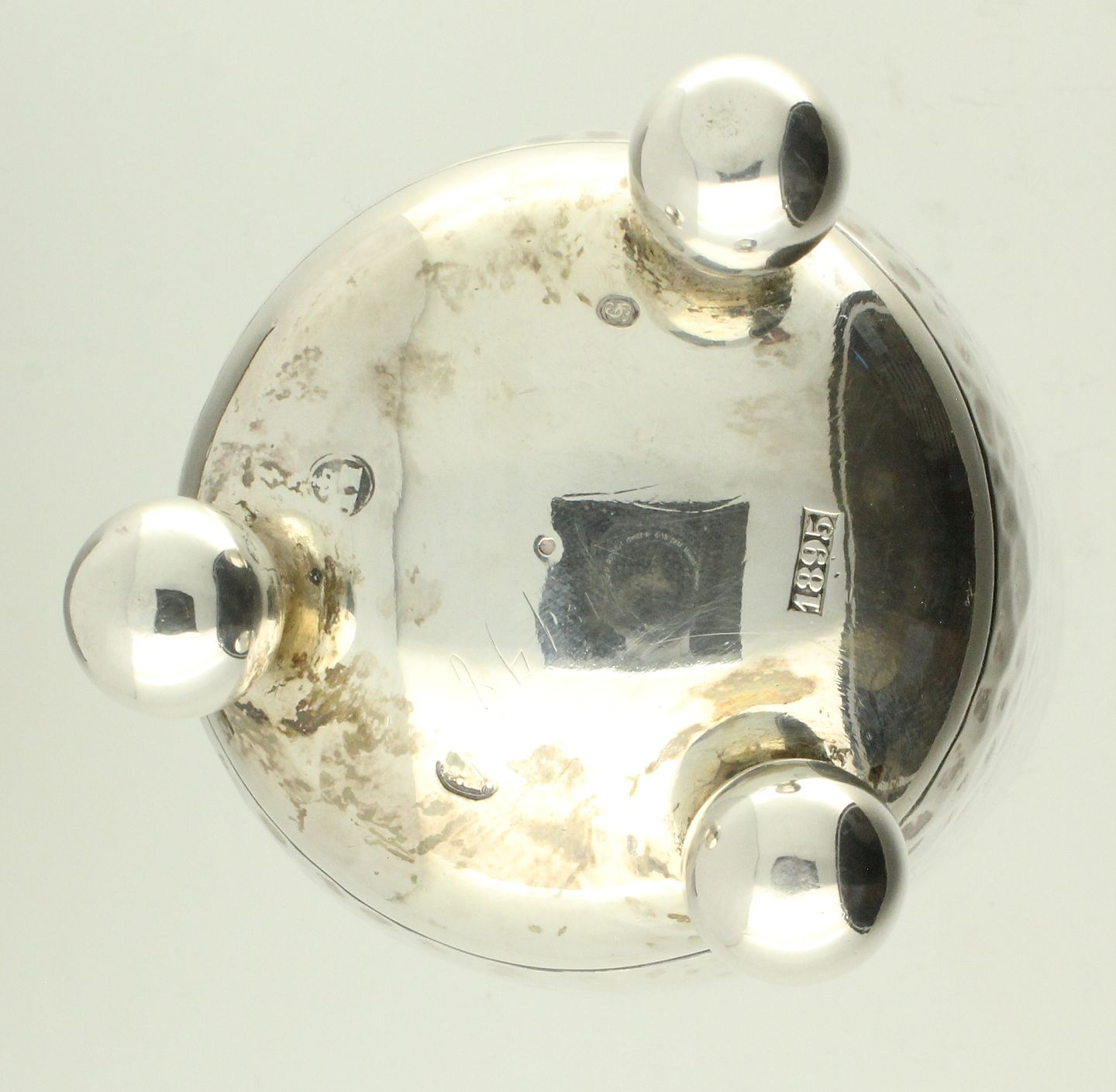 Hammerslået bæger på kugle fødder i 830 sølv fra 1895