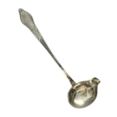 Flødeske af tretårnet sølv. L. 12,5 cm. Vægt: ca. 13 gr.