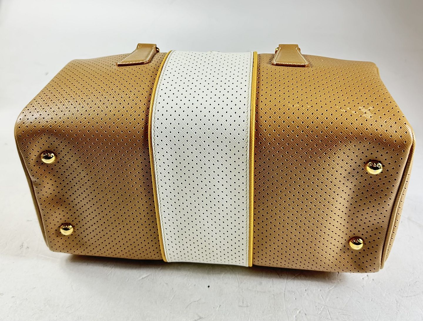 Prada - Cuoio/Mimosa Perforated Saffiano Bowling Bag BL0646
