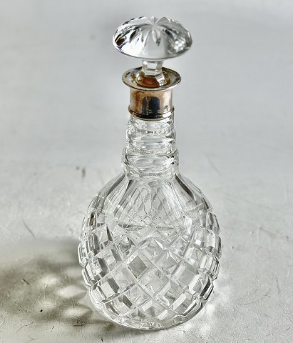 Slebet krystal karaffel med montering af tretårnet sølv. H. 26 cm.