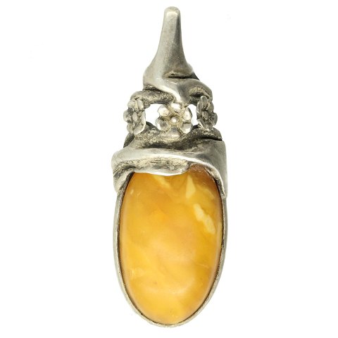 Niels Erik From - Sterling sølv vedhæng fattet med rav. L. 4,5 cm. Vægt: ca. 8,2 gr.