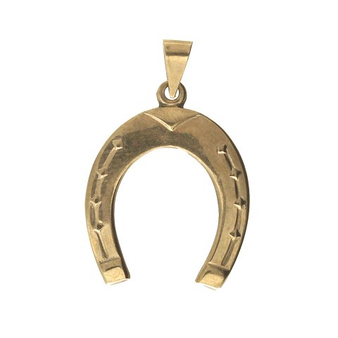 Vedhæng 'hestesko' af 8 kt. guld. L. inkl. øsken: ca. 2,5 cm. Vægt: ca. 1,39 gr.
