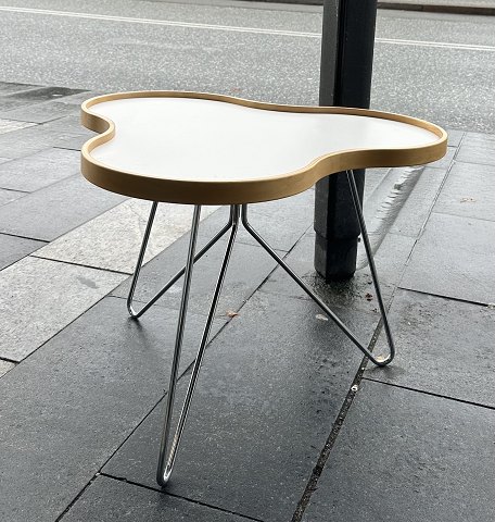 Christine Schwarzer for Swedese - Sofabord med stel af forkromet metal, bordplade af hvid laminat, kantliste af birketræ. Fremstillet hos Swedese Möbler AB, model Flower.