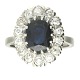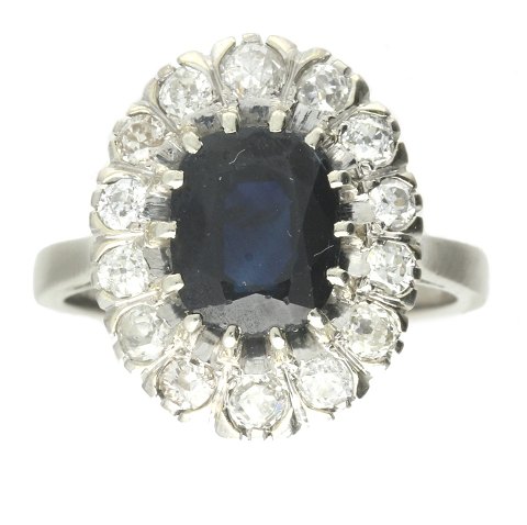 Ring af 14 kt. hvidguld fattet med blå safir og brillanter, ialt ca. 0.98ct.