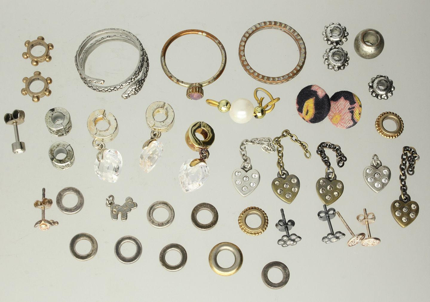 En samling bijouteri bl.a. en smule sølv. Vægt på dele af sølv: ca. 5 gr.