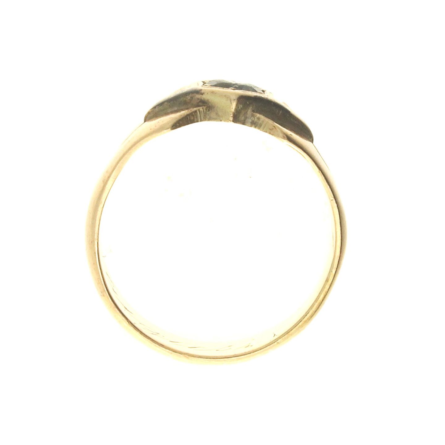 Ring udført af 14 kt. guld fattet med blå sten. Ringstr: 54. Vægt: ca. 5,65 gr.