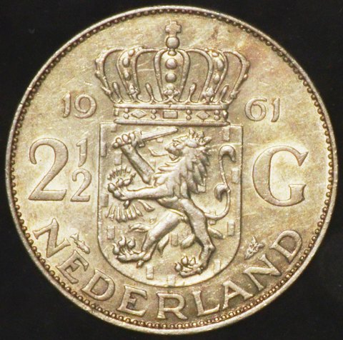 Holland - 2½ Gulden - 1961 - Juliana - Sølv - KM# 185