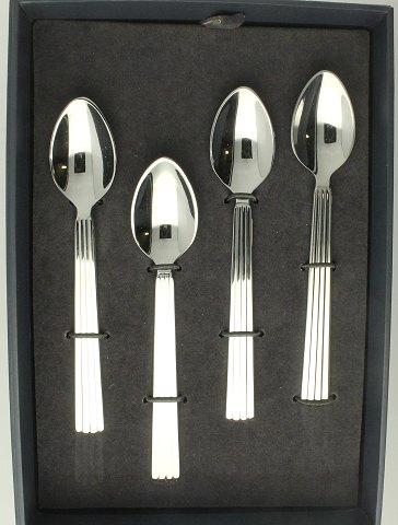Sigvard Bernadotte for Georg Jensen - Fire teskeer af stål. L. 12,5 cm. Fremstår ubrugte i original emballage.