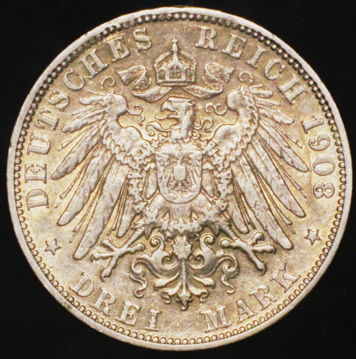 Preussen - 3 Mark - 1908 A - Wilhelm II - Sølv - KM# 527