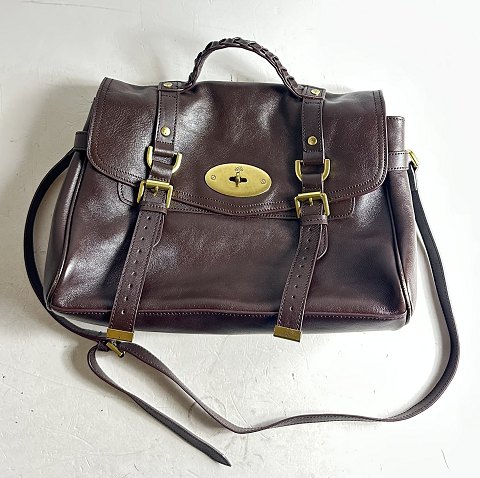 Mulberry - Crossbody taske, model Alexa oversized udført af brunt læder med gyldent hardware. Måler: 35 x 25 x 15 cm.