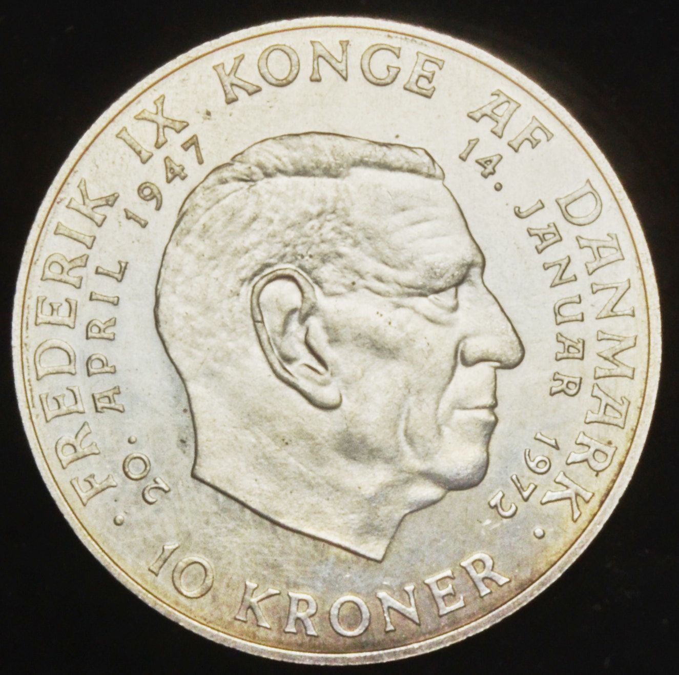 Danmark, 10 kr. sølv 1972 *Tronskiftet Frederik IX / Margrethe II*