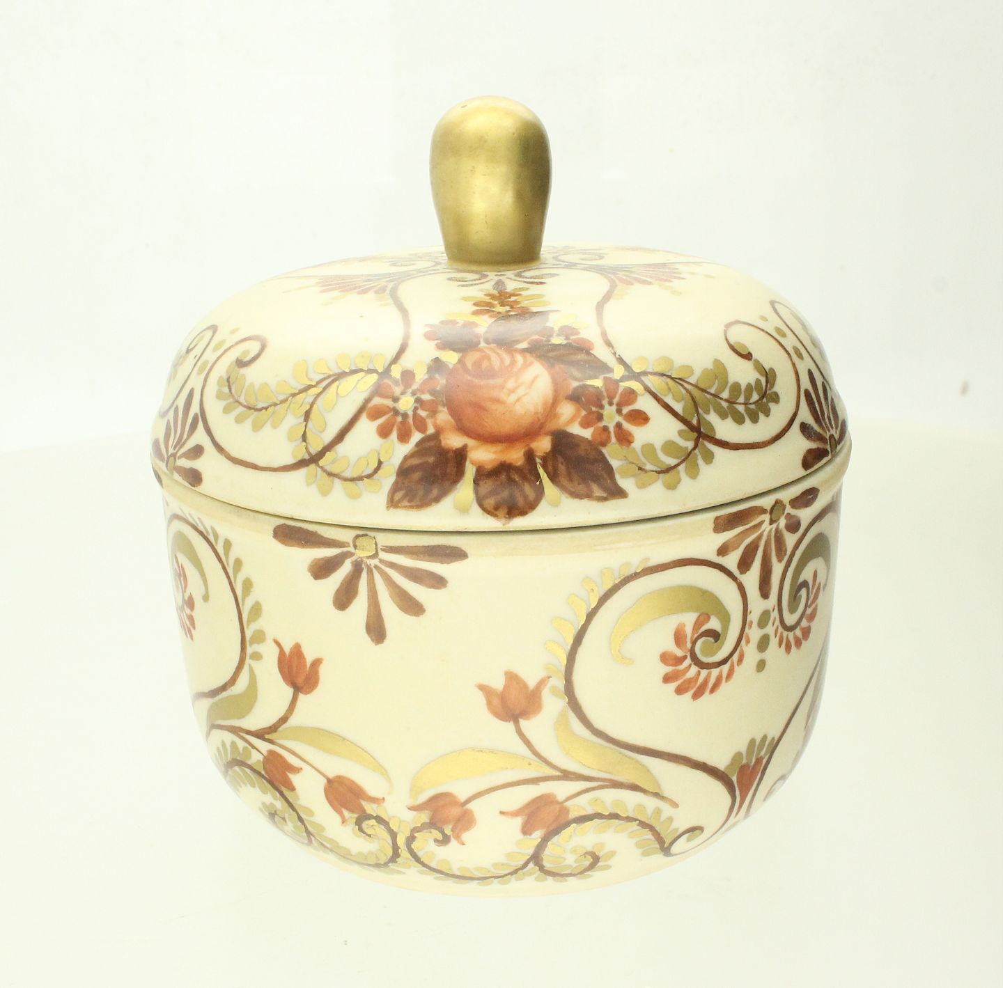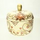 Lågkrukke af porcelæn, dekoreret med blomster og bladværk. Ø. 9 cm.