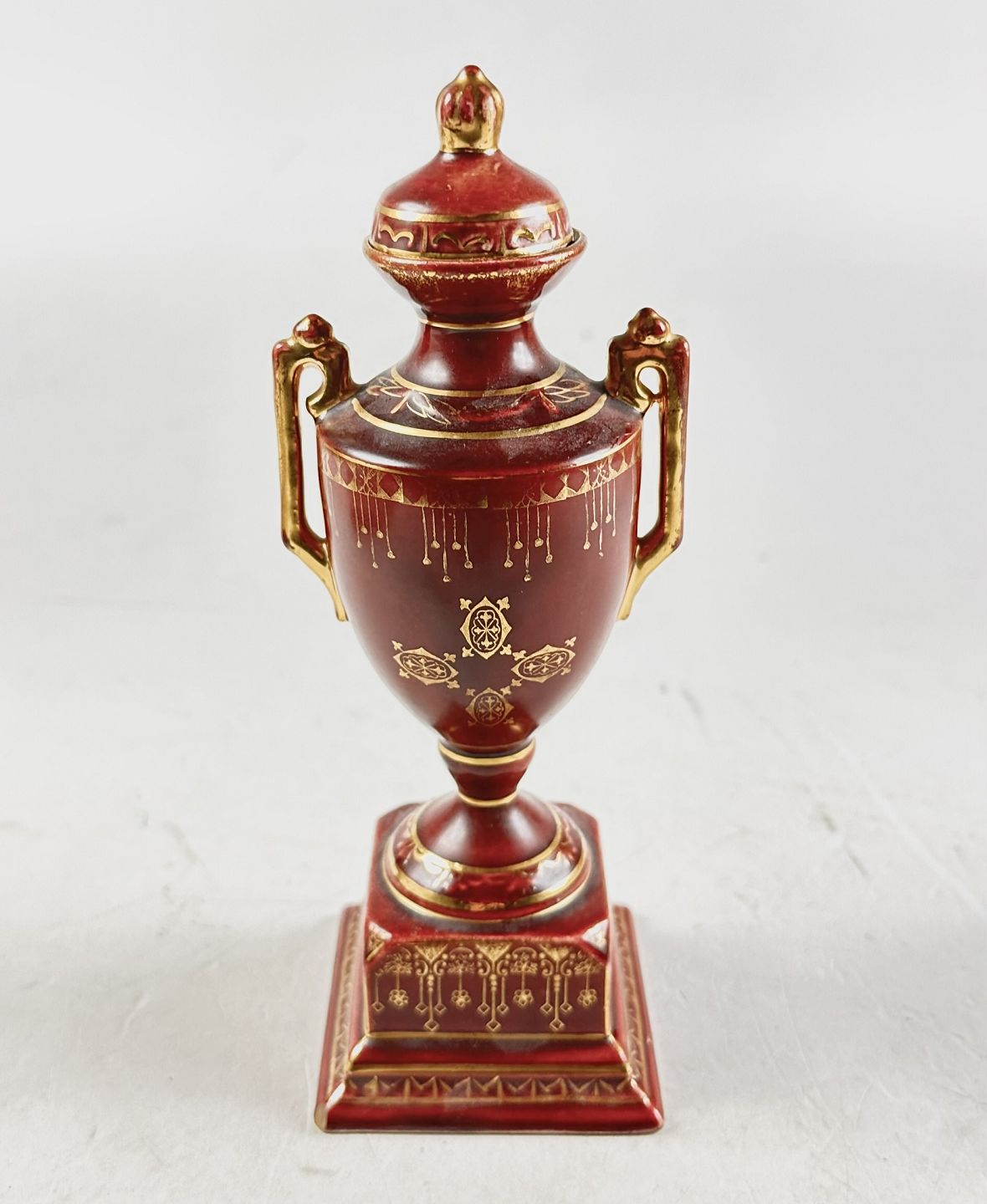 Wiener porcelænsvase med låg og bund dekoreret med guldbemaling. H. ca. 22 cm.