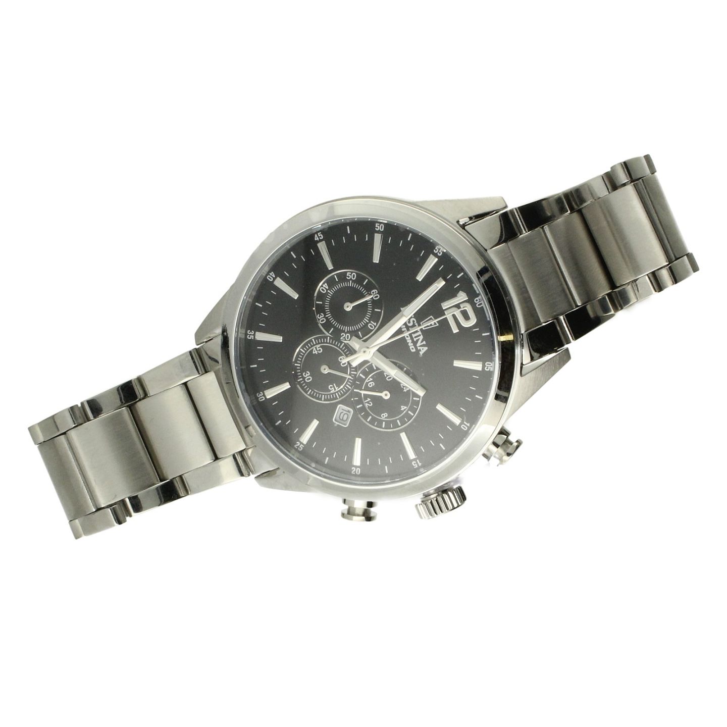 Uret har en 43 mm kasse af stål, kassen er monteret på en lænke ligeledes udført af stål. Uret har en sort skive med stregindeks, tre subdials samt datovindue. Uret er udstyret med et quartz værk. Boks medfølger.