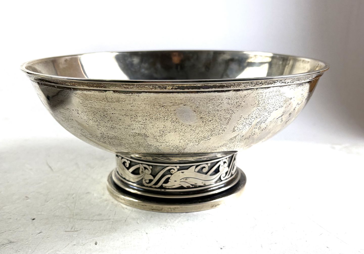 Skål / opsats af tre tårnet sølv. H. 11 cm. Ø. 25 cm. Vægt: ca. 723 gr.
