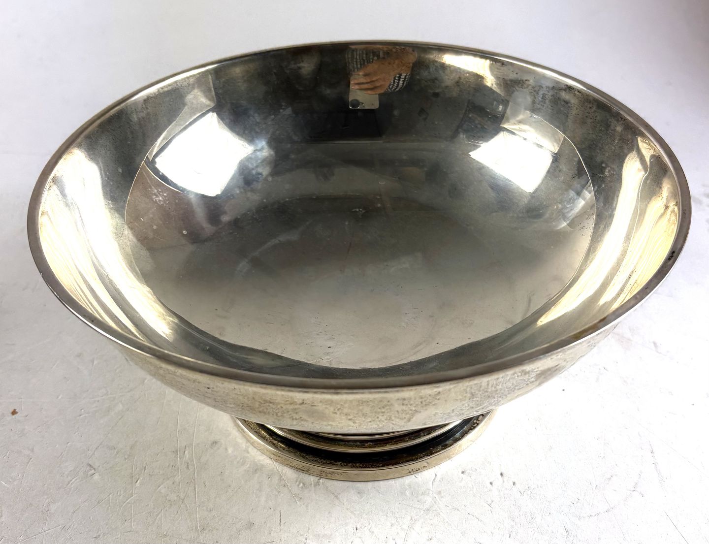 Skål / opsats af tre tårnet sølv. H. 11 cm. Ø. 25 cm. Vægt: ca. 723 gr.