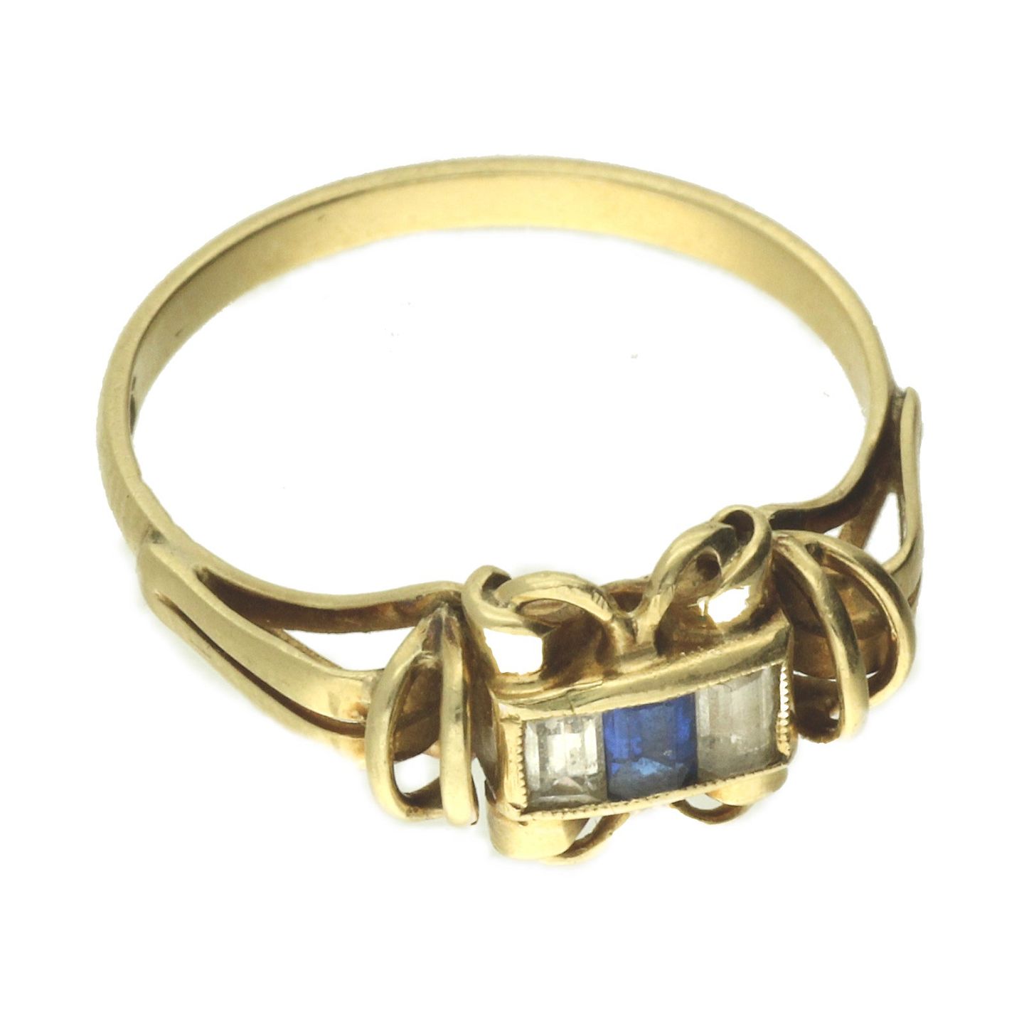 Ring af 14 kt. guld fattet klare og blå sten. Ringstr: 52,5. Vægt: ca. 1,96 gr.