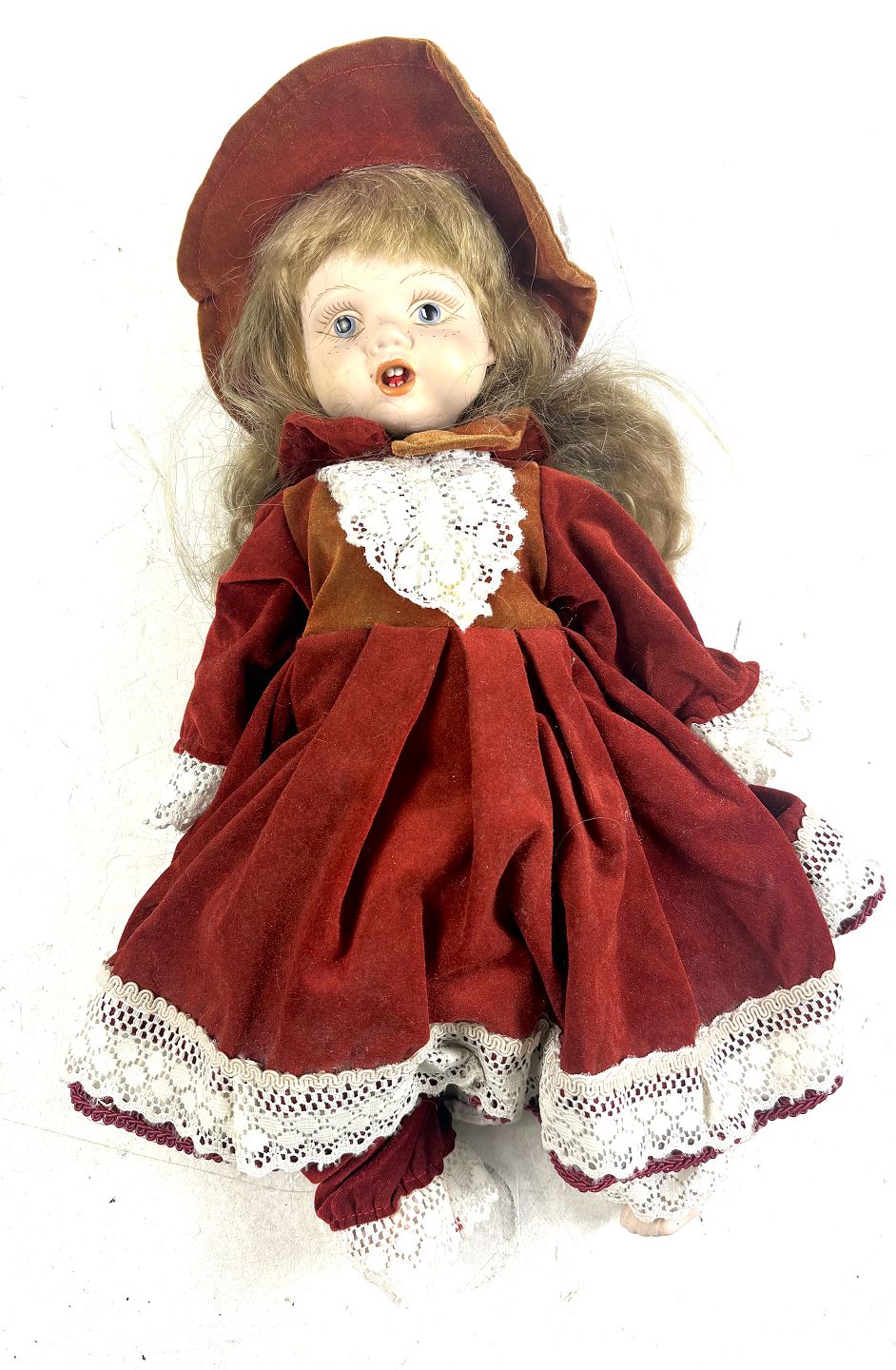 Gammel dukke af porcelæn - defekt med løst hoved og ben. H. ca. 40 cm.