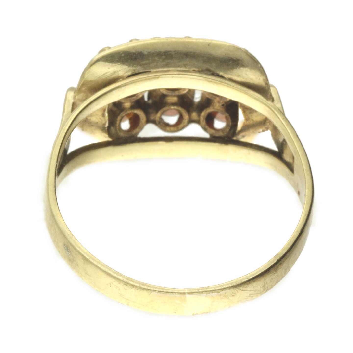Ring af 8 kt. guld fattet med granater. Ringstr: 52. Vægt: ca. 2,59 gr.