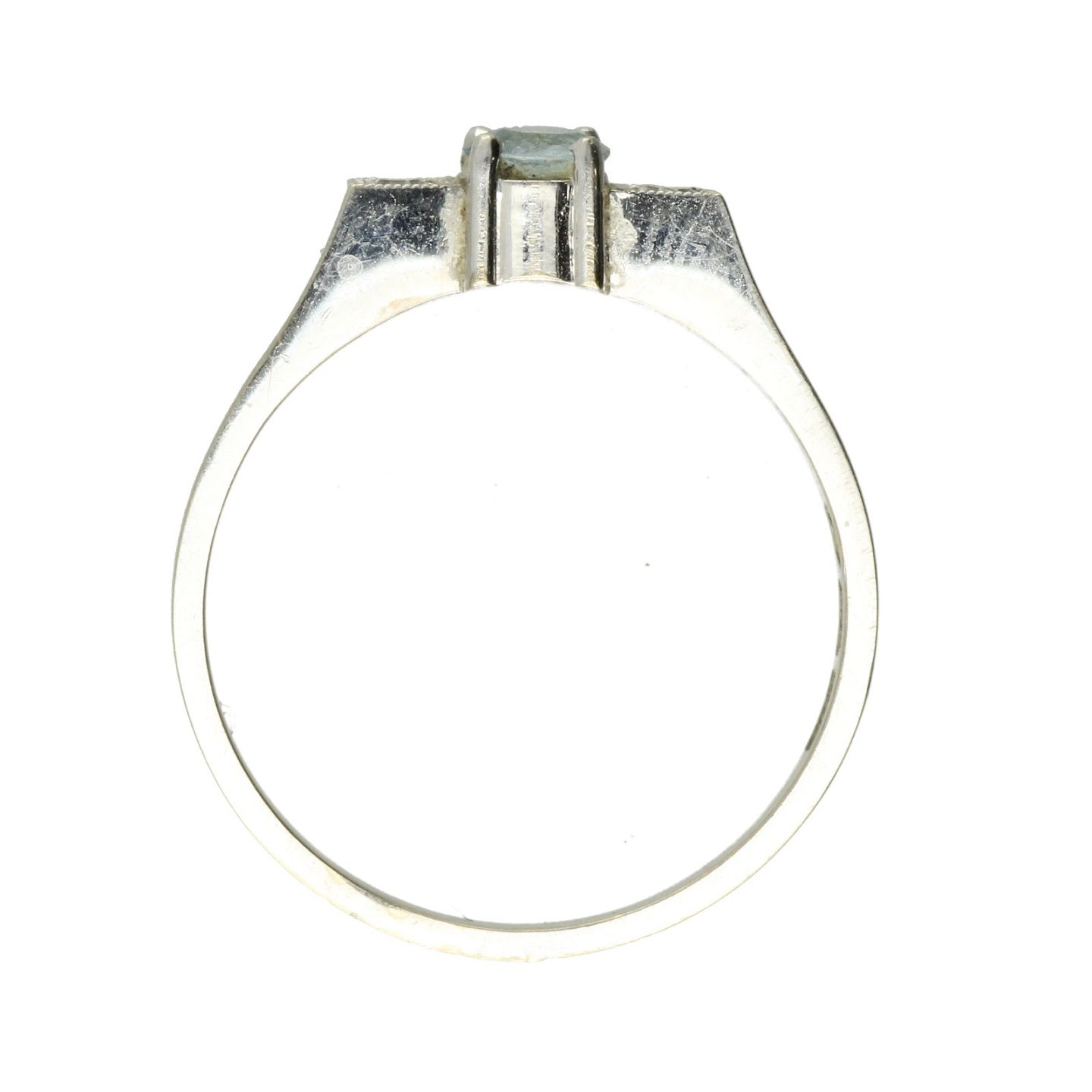 Ring af 14 kt. hvidguld fattet med to brillanter på ca. 0.02 ct samt blå sten. Ringstr: 54. Vægt: ca. 2,40 gr.