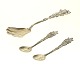 Tre 'svane' salt kar af klart glas / plet sølv inkl. tre skeer. H. ca. 7,5-12,5 cm.