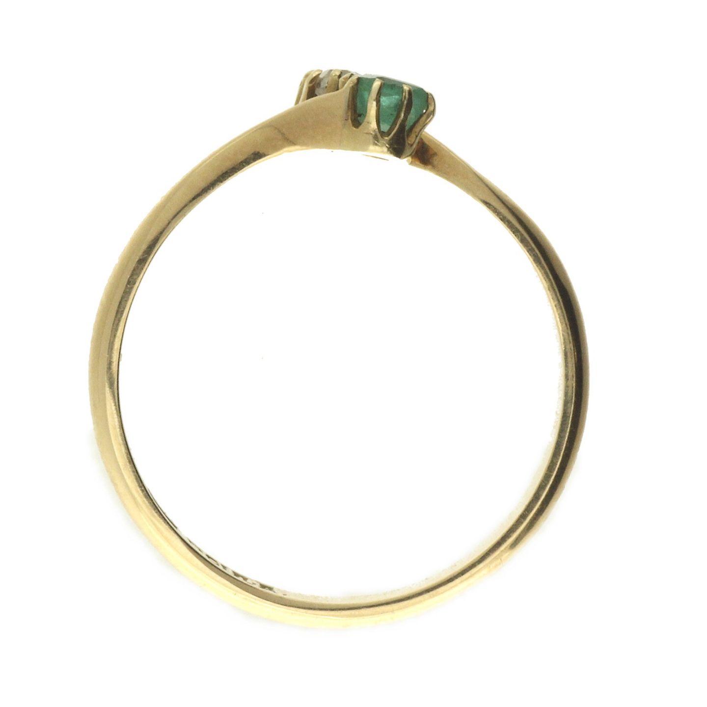 Ring af 14 kt. guld fattet med en brillant på ca. 0.04 ct samt grøn sten