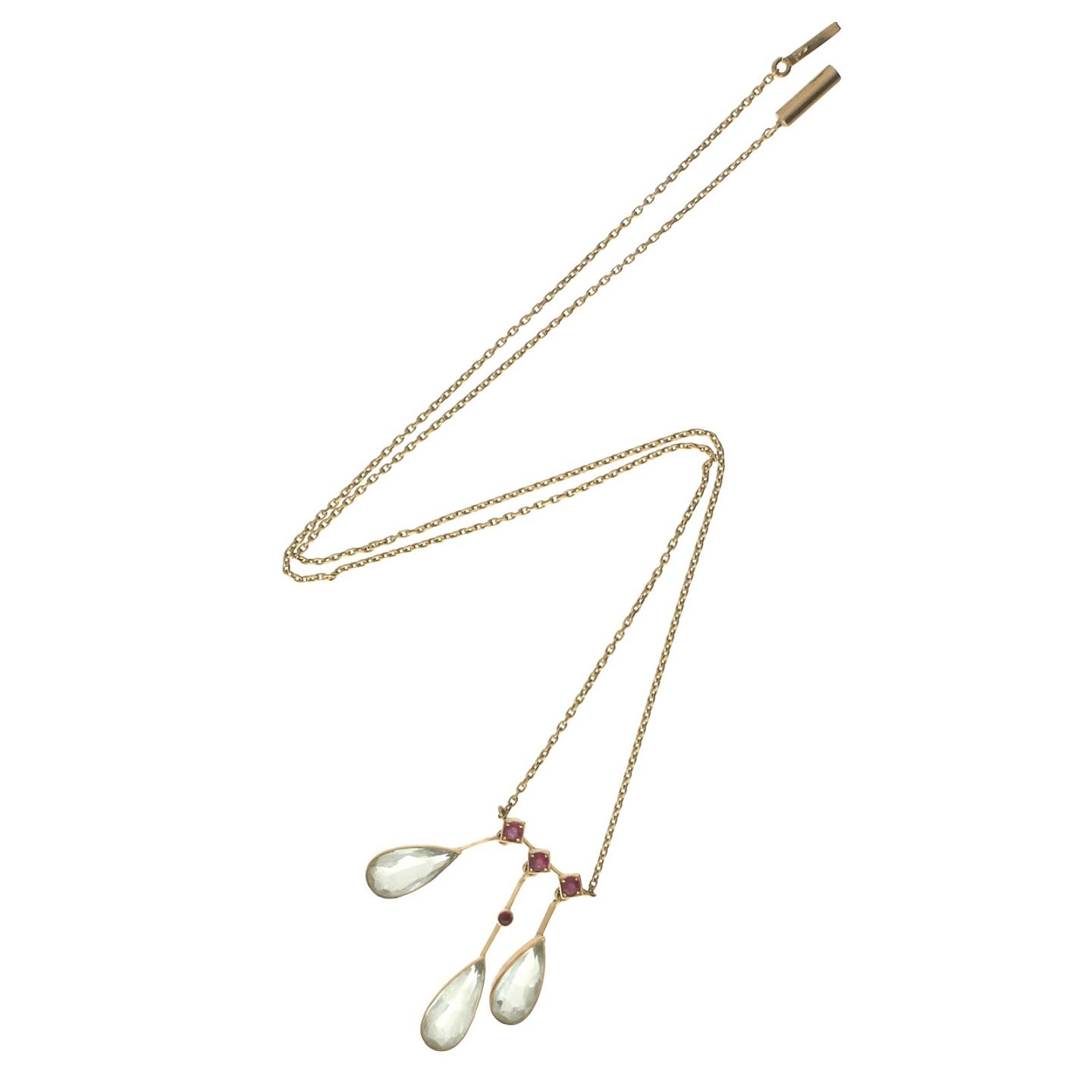 Halskæde af 14 kt. guld med integreret vedhæng fattet med farvet sten