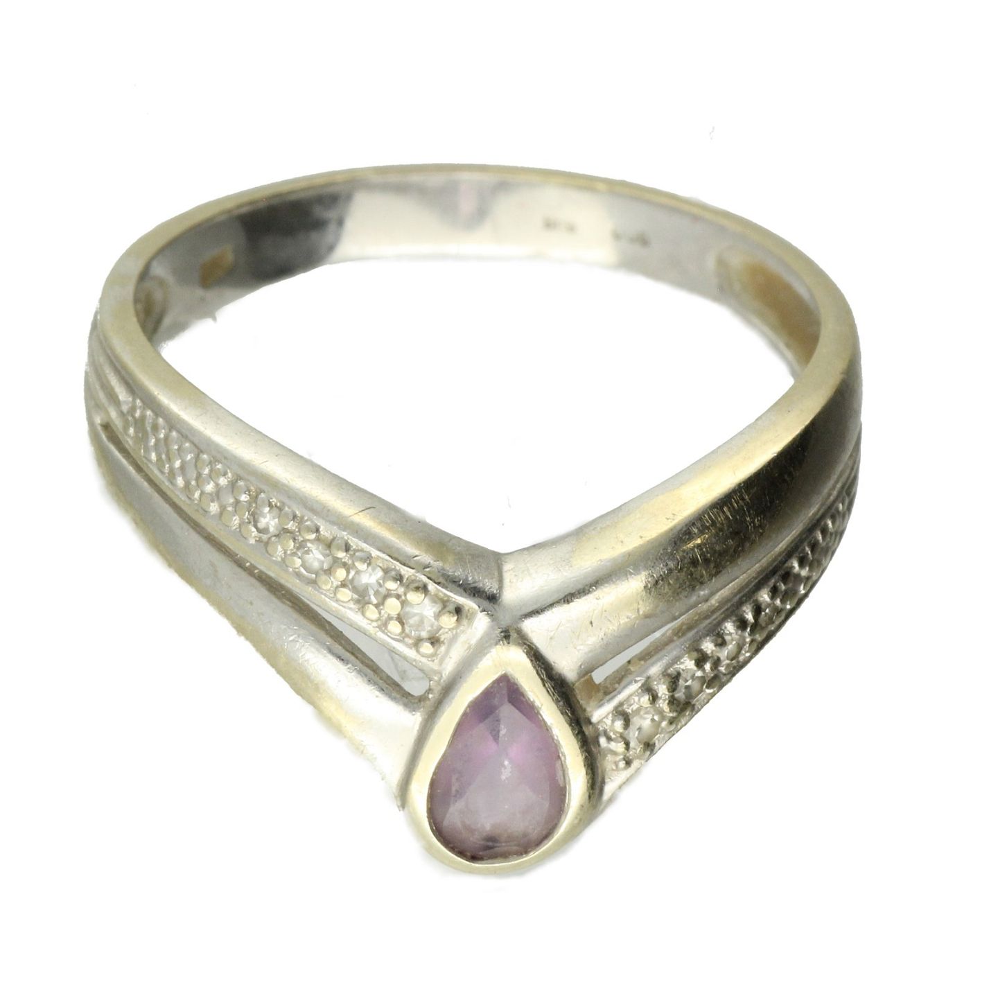 Ring af 14 kt. hvidguld fattet med brillanter samt lilla sten