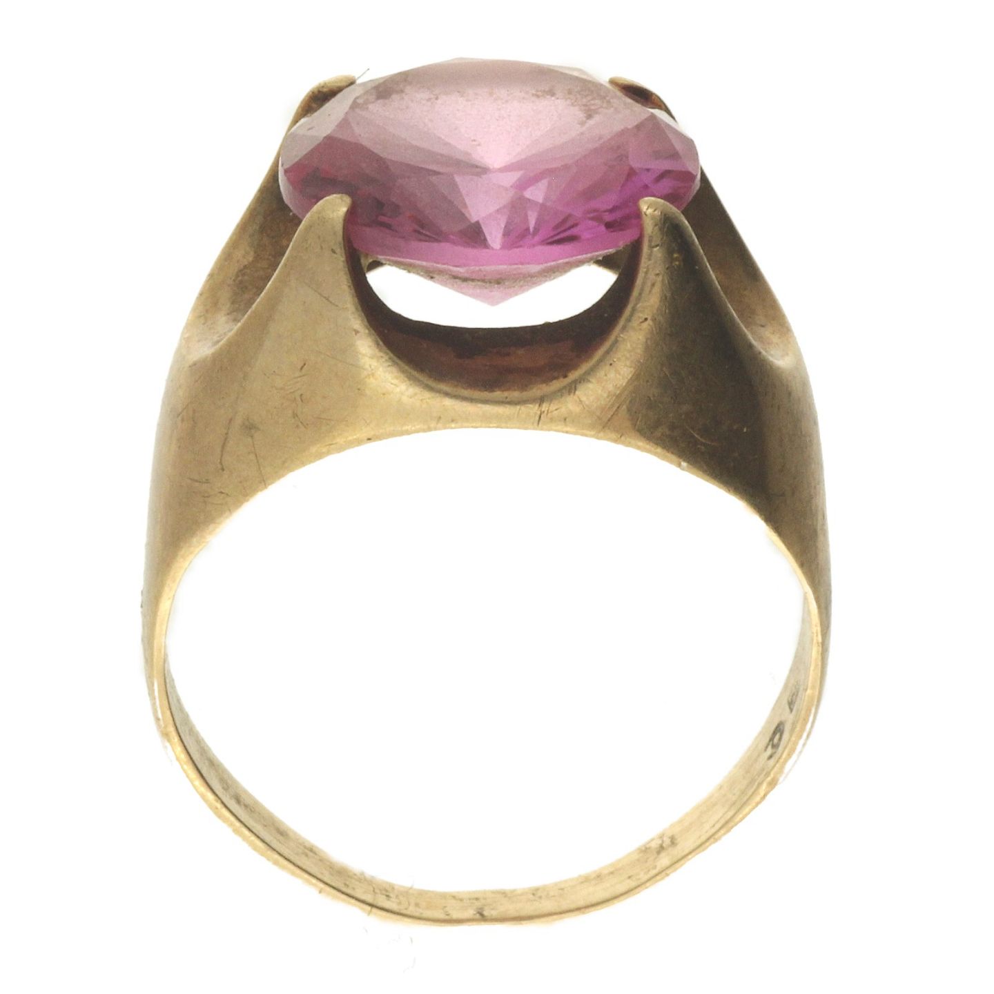 Ring af 8 kt. guld fattet med lyserød sten
