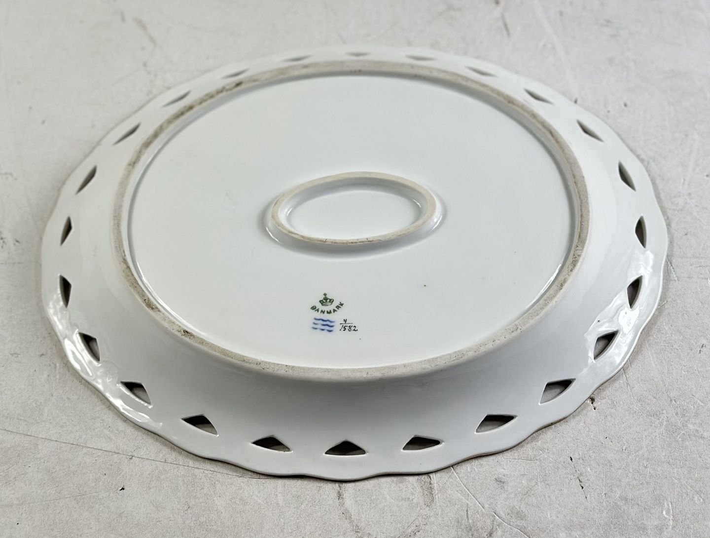 Royal Copenhagen - Fuld saksiskblomst fad med gennembrudt kant dessin nr. 1582