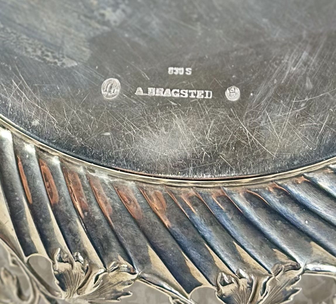 A. Dragsted - Frugtskål af sølv med glas indsats år 1907