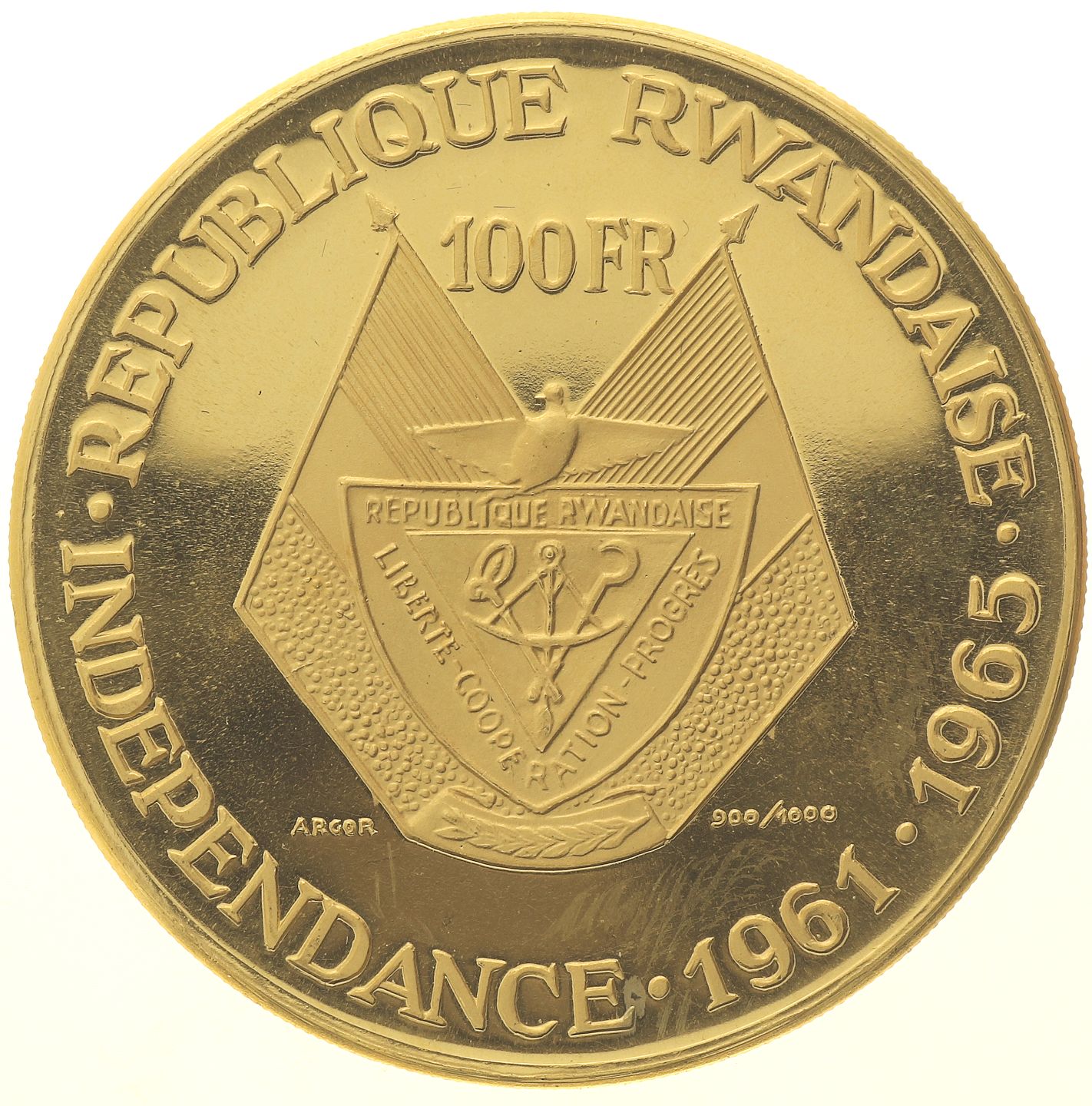 Rwanda - 100 Francs - 1965 - Præsident Gregoire Kayibanda - guld