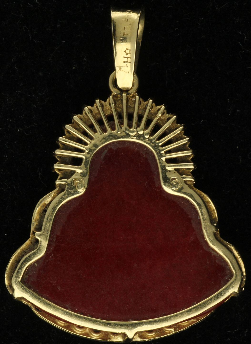 Vedhæng af 14 kt. guld med rød jadite - Buddha figur